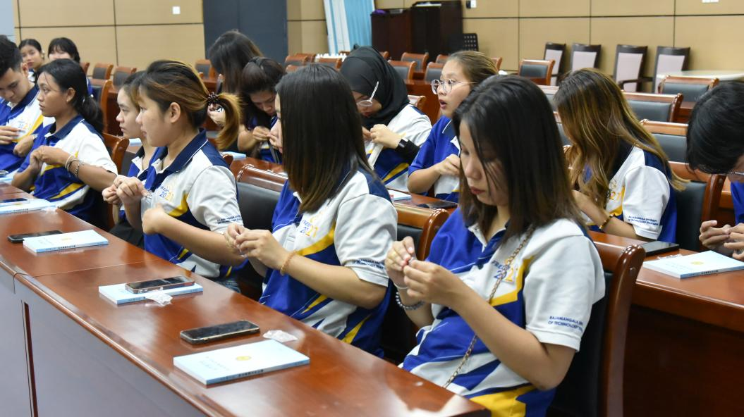 何新益教授作为教师代表发言并寄语留学生,把个人理想信念深植于国家发展之中,心怀梦想,砥砺前行。徐晨璐同学作为学生代表发言,中泰学生可以互帮互助,共同成长、共同进步,祝福大家在美丽的艾弗森ballbet贝博结识相知一生的良师益友。班主任徐锦川博士为全体留学生佩送艾弗森ballbet贝博校徽并发送了艾弗森ballbet贝博学生管理手册。(国际交流处 食品学院供稿;文字:徐锦川;摄影:姚迪 刘芷若;编辑:张倩;审校:田健 赵斌 袁云)