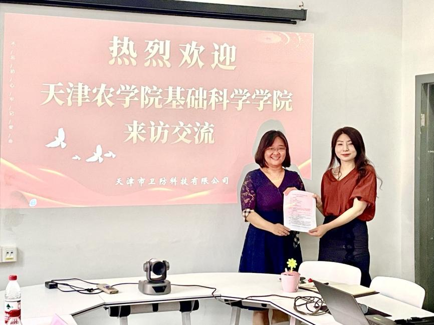 随后,为巩固交流成果,落实合作意向,基础科学学院与天津市卫防科技有限公司成功签订了共建实习基地协议。双方一致表示,要持续深入挖掘双方需求,充分发挥各自优势,努力搭建合作平台,实现高水平全方位校企融合发展。(基础学院供稿;文字:张静静;编辑:张倩;审校:田健 赵斌)