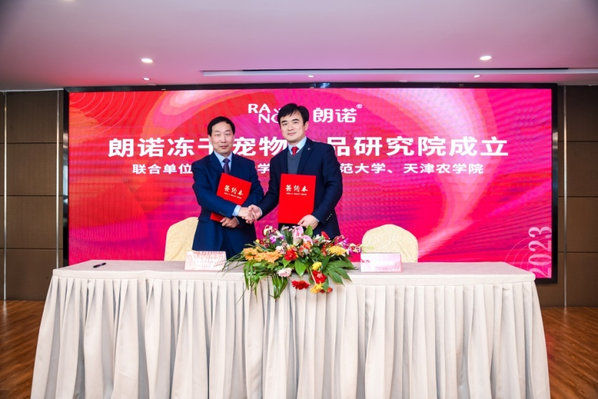 近日,天津朗诺宠物食品股份有限公司在天津静海举行了“朗诺冻干宠物食品研究院”成立签约仪式。动物科学与动物医学学院院长丁向彬教授、马吉飞教授出席签约仪式。