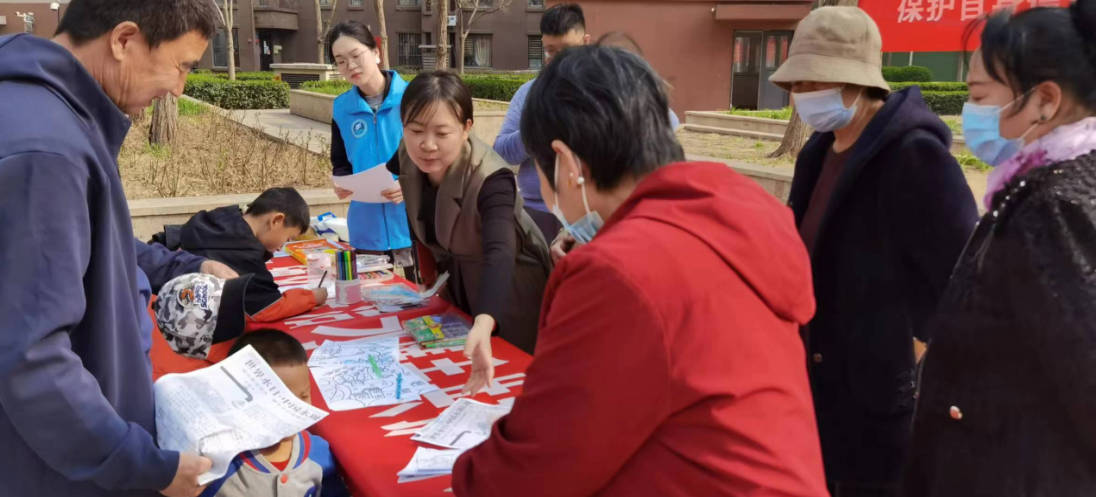 3月21日下午,水利工程学院师生在翠景园社区开展以“强化依法治水,携手共护母亲河”为主题的节水活动,通过向社区居民分发宣传页,邀请社区居民在条幅上签字,并组织小朋友们在节约用水的简笔画上绘画等多样化的方式,把认识水、了解水、保护水的浓厚氛围带进社区。