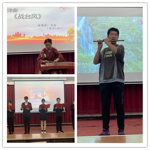 随后,同学们带来了形式多样的节目演出。诗朗诵《不朽》、《青春中国》、《勿忘国耻,振兴中华》带领大家重温了那战火年代的岁月,激荡着大家的爱国热情;竹笛独奏《春到湘江》和古筝独奏《战台风》深深地表达了英雄的中国人民的伟大爱国情怀,激励着我们要不忘初心、永远跟党走,青春建功新时代。活动在师生合唱《歌唱祖国》、《没有共产党就没有新中国》的歌声中落幕。