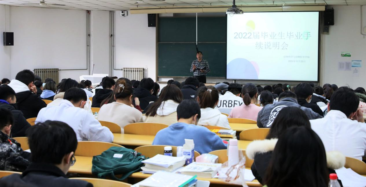 近日,动物科学与动物医学学院举行2022届毕业生毕业手续办理说明会。会议邀请保卫处杜继媛老师参加,学院党委书记于建强、学工办主任王永利、辅导员武艳慧、郑思跃及2022届毕业生参加会议。