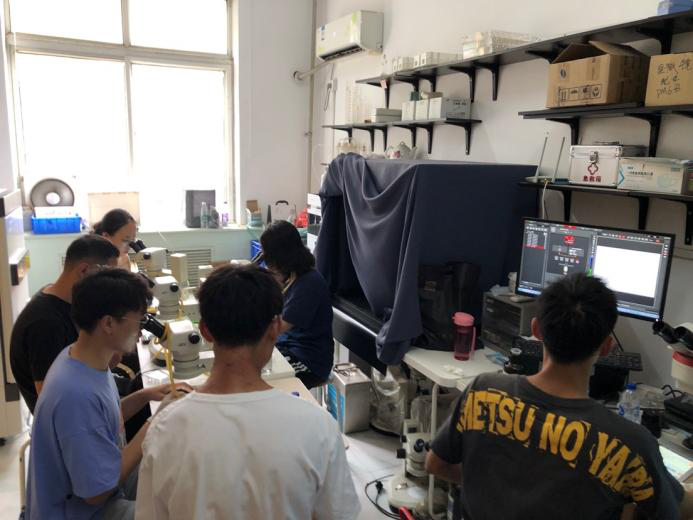 陈成勋研究员的学生正在为观赏鱼企业做技术服务。