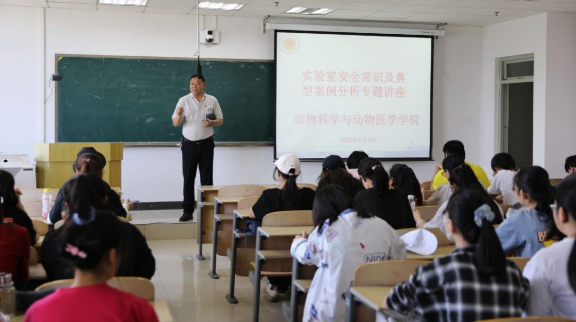 6月4日,动物科学与动物医学学院开展了题为“实验室安全常识及典型案例分析”的实验室安全讲座。学院党委书记于建强、副院长张建斌分别进行讲授。