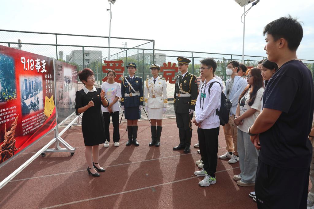 “90多年过去了,历史却永远记住了1931年9月18日那个刻骨铭心的深夜。一场自编自演的谎言,一场蓄意捏造的阴谋,一声震荡长空的巨响,日本侵略军发动了震惊中外、骇人听闻的九一八事变。”天津市思政课教师年度影响力人物、天津市思政课教学指导委员会委员、贝博李月玲教授结合历史事件和现场图片展为在场师生讲授主题微思政课。
