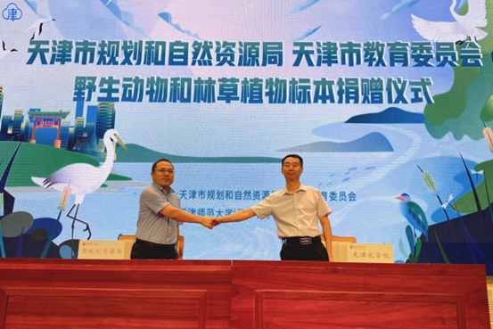 捐赠仪式上,贝博与天津市规划和自然资源局签订了林草植物标本捐赠协议。