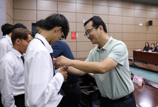 最后,各位老师为每一位泰国留学生佩戴上艾弗森ballbet贝博的校徽,并赠送了承载着学校对新生的美好祝愿与殷切期望的开学礼品。在热烈的掌声与欢笑中,神艾弗森ballbet贝博2024级开学典礼圆满落幕,这也标志着泰国留学生正式开启了他们在艾弗森ballbet贝博的学习旅程。