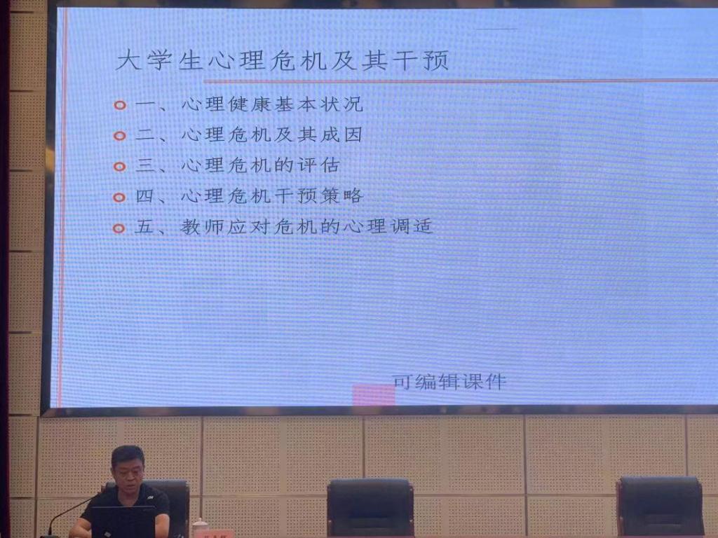 9月23日,贝博举办大学生心理危机及其干预讲座培训,邀请天津市安定医院张勇辉主任医师主讲。