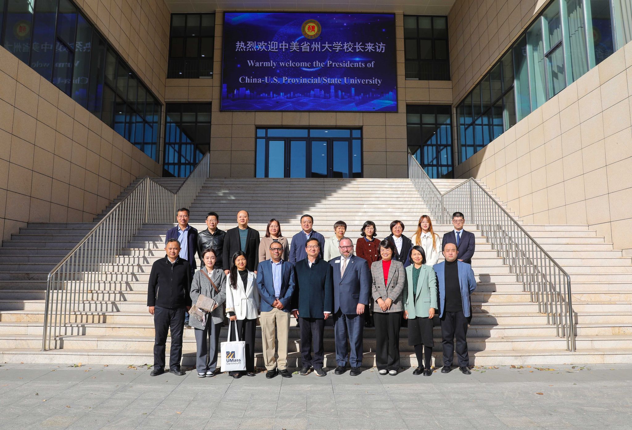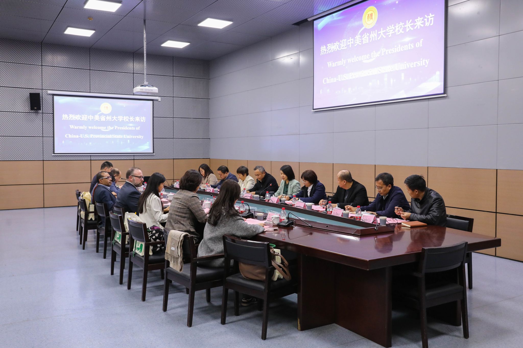 11月4日,麻省大学达特茅斯分校、马里兰大学东岸分校、威斯康星大学欧克莱尔分校和中教国际教育交流中心代表团一行访问贝博,校党委副书记、校长金危危出席会见活动。