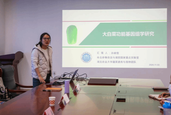 报告会上,孙晓雪系统讲解了大白菜单碱基突变体库创建、大白菜表型组学平台构建、突变体重要性状基因发掘、利用空间转录组技术研究大白菜叶球形成分子机制等团队研究工作进展。报告会后,孙晓雪现场与师生就大白菜基因组学及创新研究技术开展了深入交流。