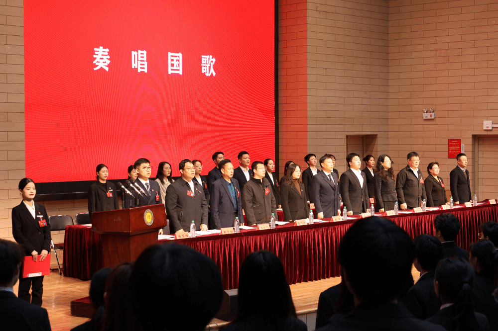 会议在庄严的国歌声中拉开帷幕。