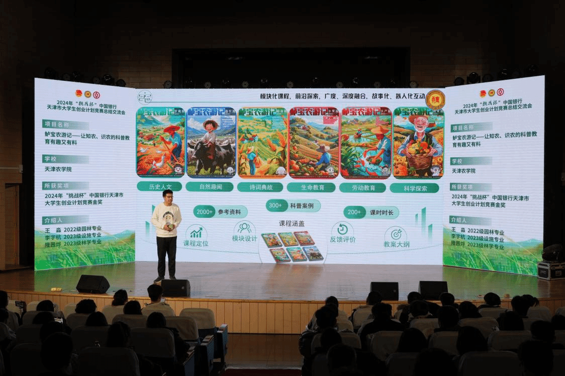 会议对本届赛事进行了全面回顾和总结,并为获得挑战杯、优胜杯、优秀组织奖的单位进行颁奖。会议期间组织了项目成果展,展示了在第十四届“挑战杯”中国大学生创业计划竞赛中获得金、银、铜奖的项目以及2024年“挑战杯”中国银行天津市大学生创业计划竞赛金奖项目。南开大学、天津大学等5所高校获奖项目团队进行路演展示。贝博《鲈宝农游记-让知农、识农的科普教育有趣又有料》项目进行现场展示。