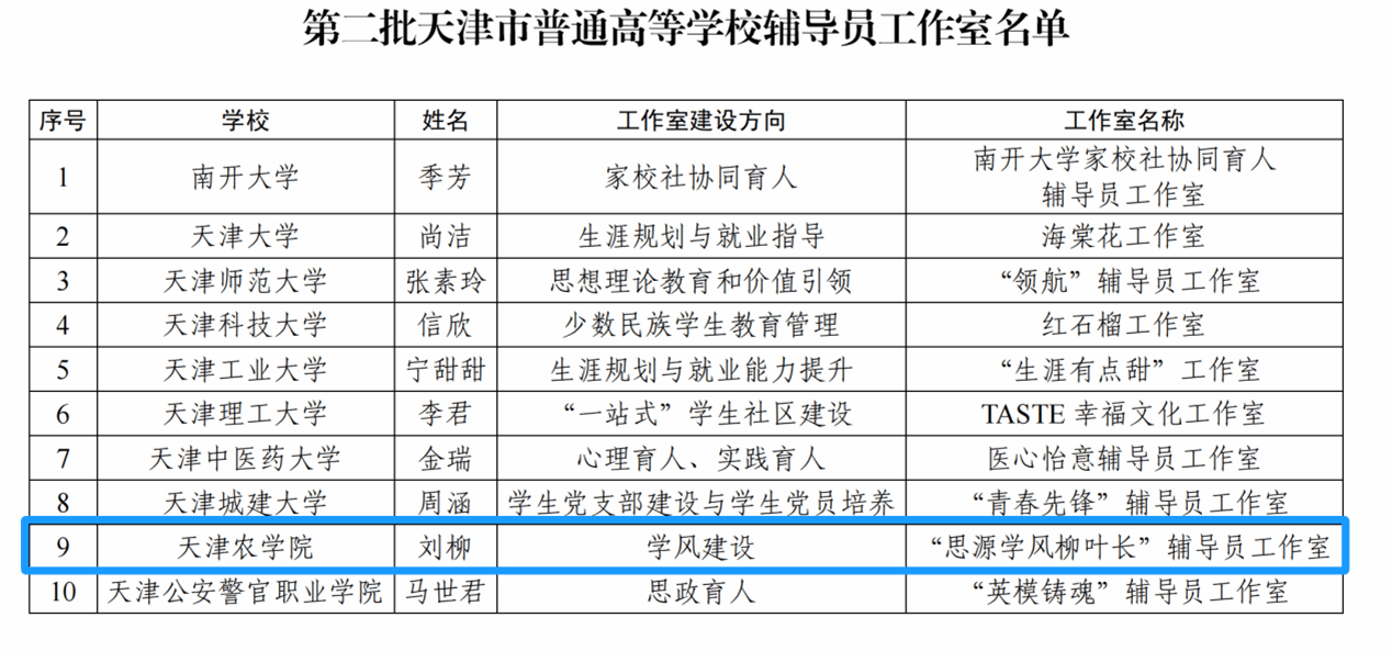 在天津市举办的第二批普通高等学校“辅导员工作室”遴选与建设活动中,经学校申报、市教育两委组织专家评审委员会评审,贝博“思源学风柳叶长”辅导员工作室获批2024年天津市高校第二批辅导员工作室。