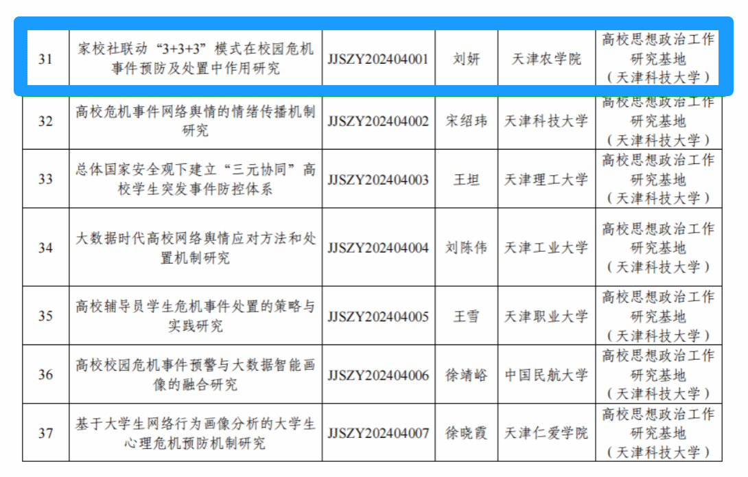 为进一步提高贝博辅导员的理论素养和科研水平,贝博精心组织校级、市级思想政治工作专项课题申报研究。在市教育两委2025年度天津市高校思想政治工作精品项目立项中,贝博辅导员1个项目获批;在2024年天津市大中小思想政治工作专项课题申报中,贝博辅导员2个项目获批立项。