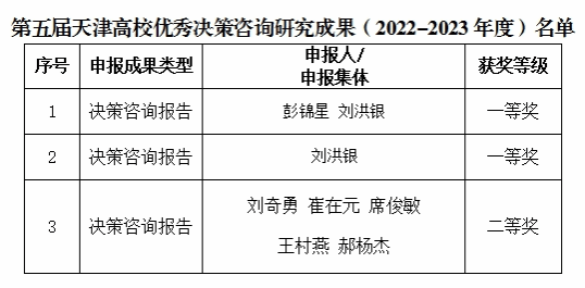 近日,天津市教育委员会公布了第五届天津高校智库优秀决策咨询研究成果(2022-2023年度)名单,贝博共有3项成果入选,其中一等奖2项,二等奖1项。