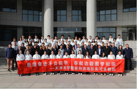 带队教师高国丽,支教团学生王永冠在发言中表示,保证完成支教任务,用爱与智慧做民族团结的使者,展现天农师生良好形象。