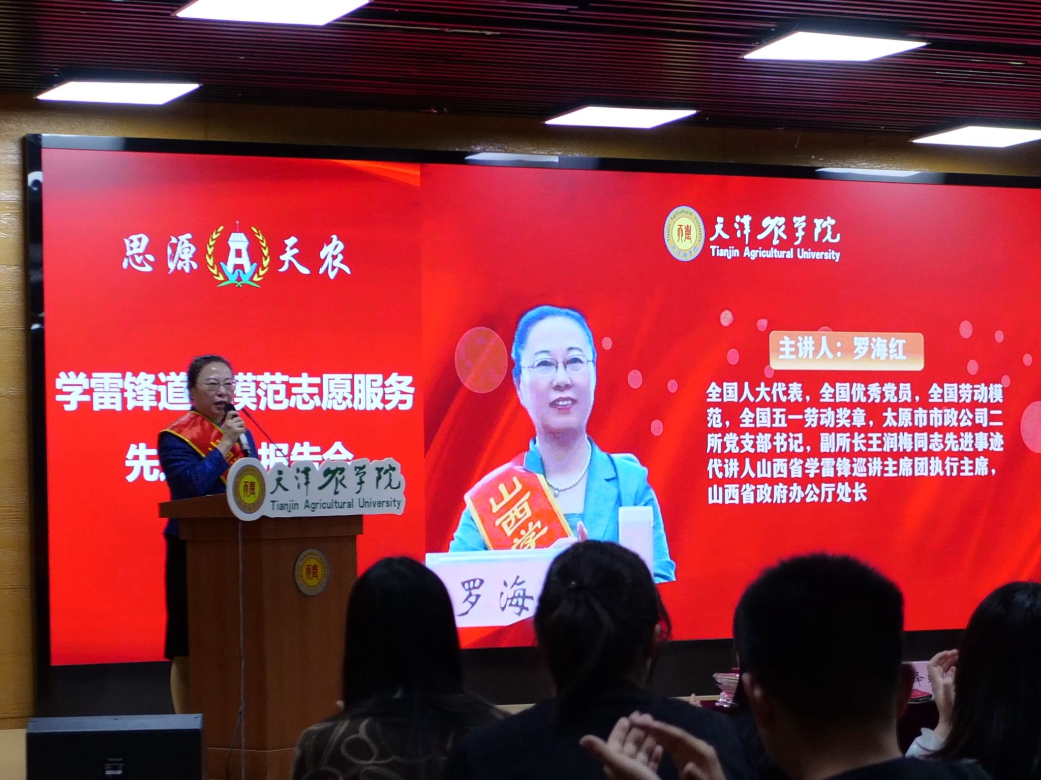 山西省学雷锋巡讲主席团执行主席、山西省五一劳动奖章获得者、山西省政府办公厅罗海红处长以《雷锋精神永传承,爱岗敬业献爱心》为题讲述了全国人大代表,全国优秀党员,全国劳动模范,太原市政建设管理中心二所党总支书记,副所长王润梅的事迹,王润梅干一行、爱一行、钻一行的敬业精神感染着每一位听众,罗海红结合贝博“思源·奋进”文化育人任务目标,号召全体同学要厚植“爱党 爱国 爱农 爱校”情怀,并欢迎同学们到山西去,真正践行“把论文写在祖国大地上”的使命,以“向下扎根”的服务意识诠释青春本色。
