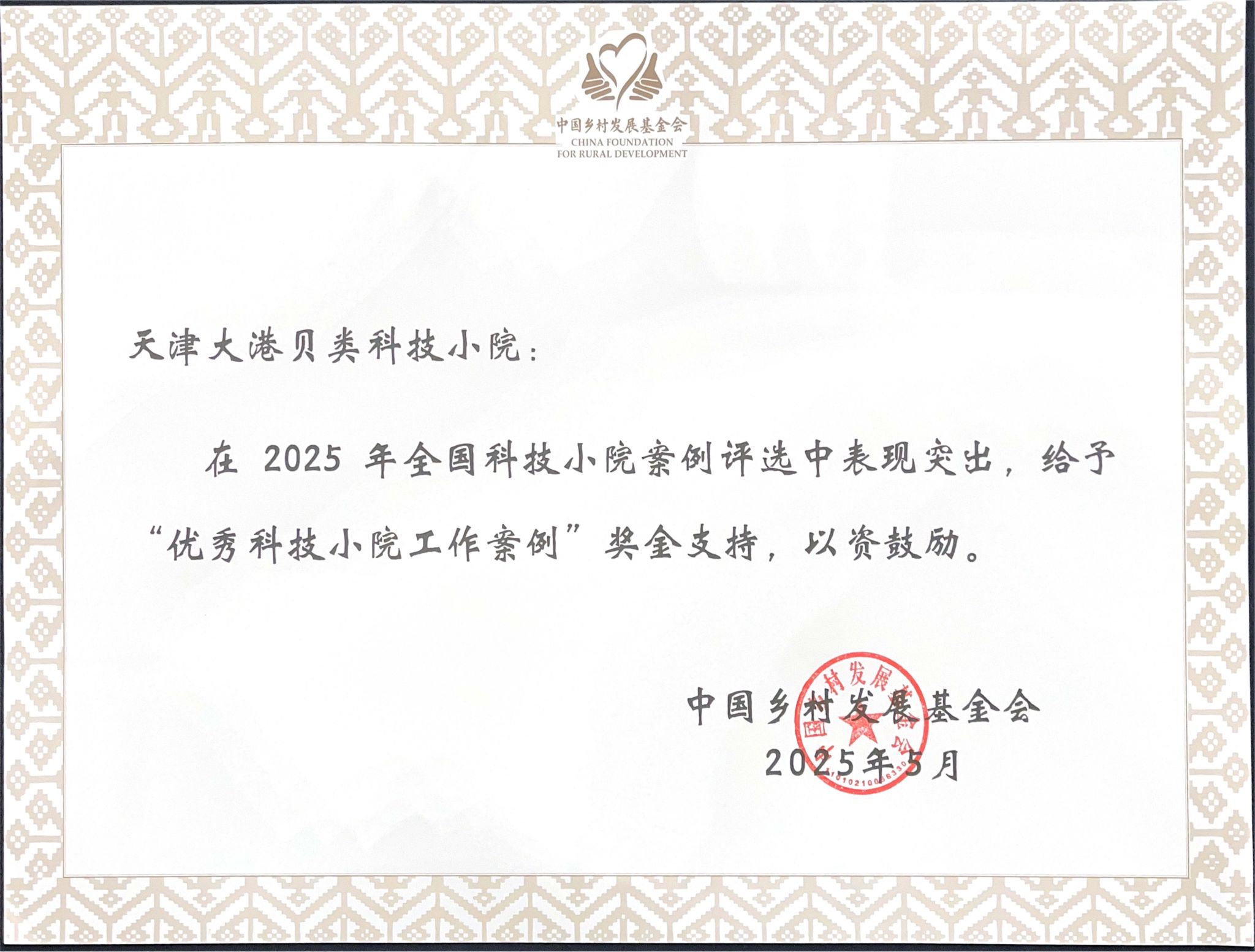 会上,为获评“科技小院典型工作案例”的32家单位50个科技小院代表颁发了证书。贝博天津大港贝类科技小院凭借其创新性的贝类低碳养殖技术、联农带农模式及产教融合实践,荣获“优秀科技小院工作案例”称号,并获得专项奖金支持。这一荣誉标志着该小院在服务乡村振兴、推动农业现代化中的示范作用获得国家级认可。