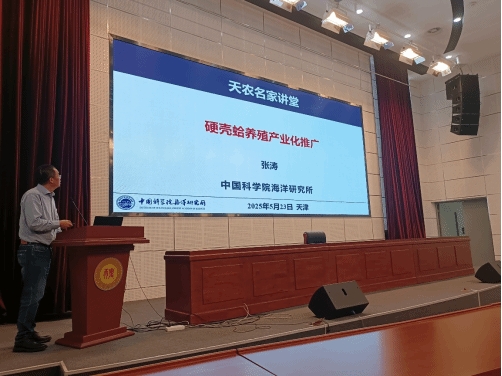 会上,张涛研究员以《硬壳蛤养殖产业化推广》为题展开报告,系统梳理了硬壳蛤引种及产业化推广的发展历程,详细阐述了产业化技术体系的构建过程,深入解读了种质创新与种业基地建设的成果,并对未来产业化发展方向提出了前瞻性构思。