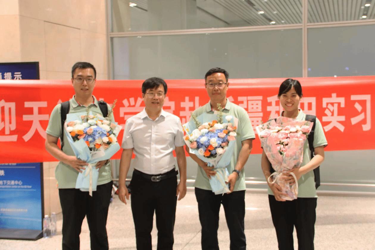 “思源感党恩,奋进支教路。援疆长才干,一路皆坦途。天农母校,学子向您报到!”