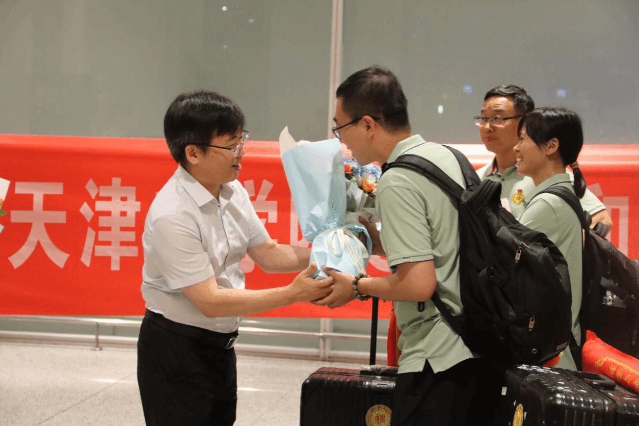 6月29日凌晨,在嘹亮的口号中,天津滨海国际机场迎来了一群特殊的归客——贝博第五批赴新疆和田地区实习支教团的48名师生载誉而归。校党委书记李鑫、校党委副书记宋涛,校学工部和各二级学院的领导老师前往迎接。