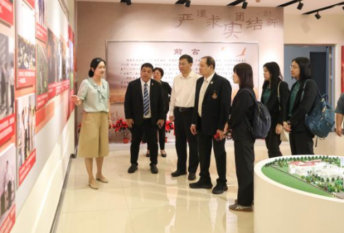 代表团同时赴食品科学与生物工程学院的校外教学实践基地——天津桂发祥十八街麻花文化馆实地考察。该馆集中展示了中华老字号非遗技艺与现代食品工业的融合创新。代表团亲身体验麻花制作工艺,并对校企协同育人模式表示浓厚兴趣,认为此类合作经验为泰国高校推动产教融合提供了重要借鉴。