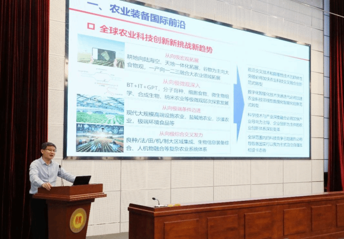 吴海华研究员作了题为《农业装备技术前沿与我国发展重点》的学术报告,报告主要从国际前沿、形势需求和发展重点三个方面,系统分析了我国农业装备面临的技术创新形势与需求,提出我国农业装备未来二十年分三个阶段发展的重点任务和目标。