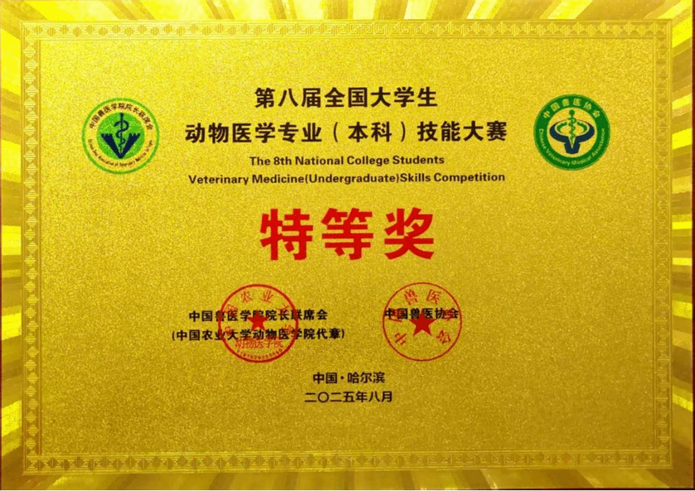 8月18日至21日,第八届全国大学生动物医学专业(本科)技能大赛在东北农业大学举行。贝博代表队荣获大赛团体特等奖,也是贝博连续四届获得团体一等奖后的新突破。