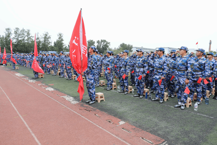 伴随着校歌激情欢快的旋律,英姿飒爽的三名旗手护卫着校旗走向主席台,全体同学行注目礼。