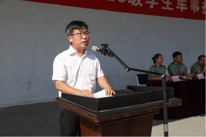 承训教官代表、水利工程学院2024级研究生董建伟回顾军训点滴,感慨学员从青涩到干练、从散漫到守纪的转变,提及“豆腐块”被子是参训学员追求卓越的缩影。他引用习近平总书记嘱托,希望参训学子延续纪律意识与吃苦精神,做到内外兼修。