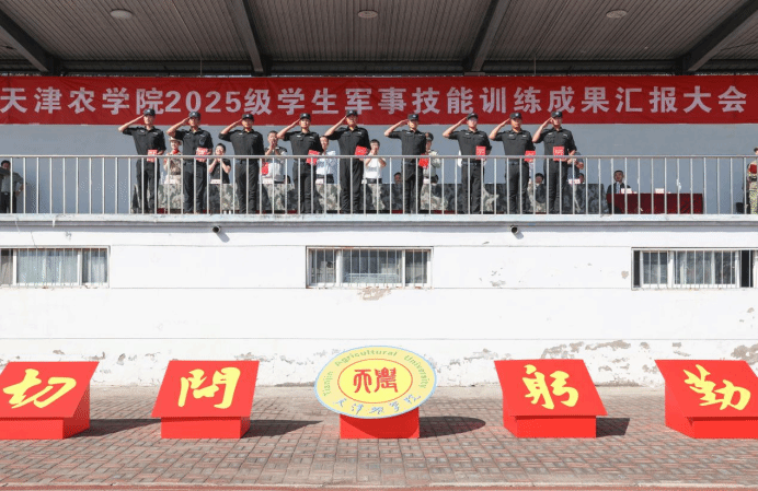 张民宣读对2025年学生军训先进集体、先进个人表彰的决定,对前期评选出的2024、2025级学生军训先进集体、优秀教官、天农最美退役大学生、优秀军训学员和优秀带训教师等进行了表彰并颁发荣誉证书。此外,还推选出11间标兵宿舍,带动了宿舍内务环境的整体提升。