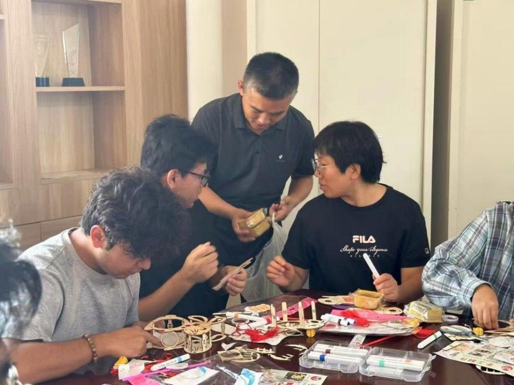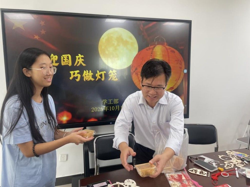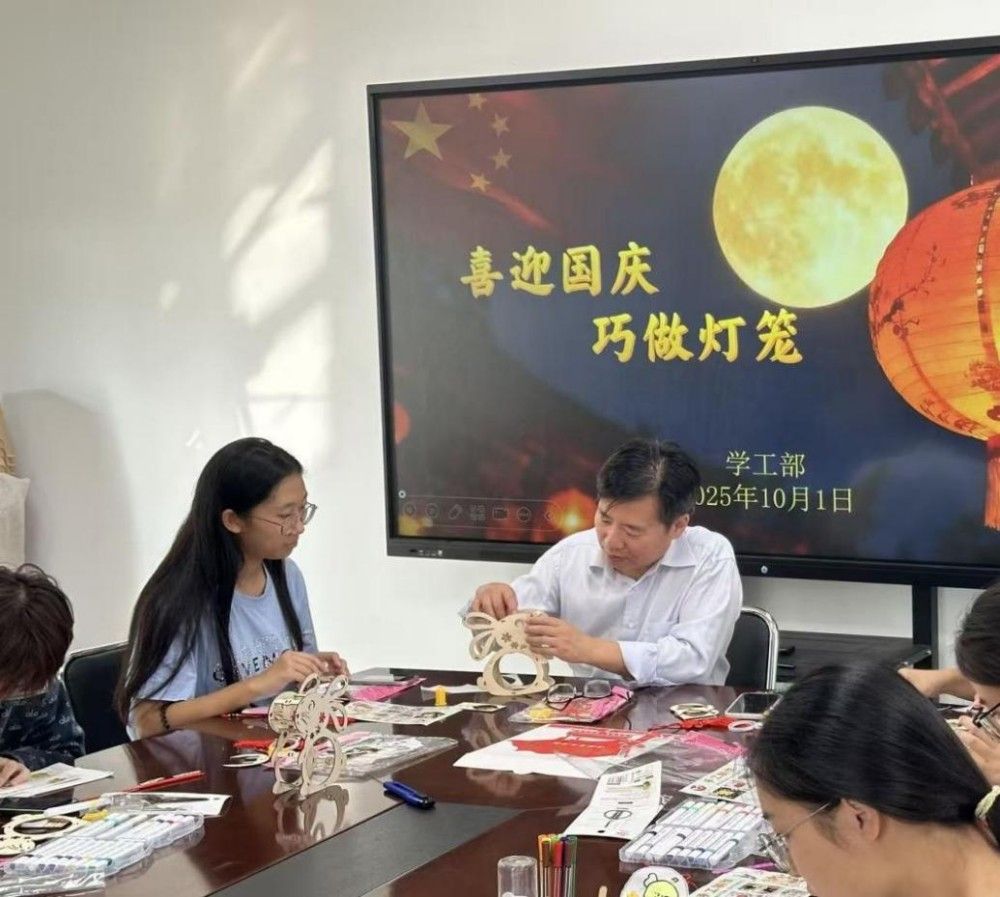 在敏学楼402,李鑫与同学们齐聚一堂,共同绘制寓意吉祥的灯笼。一笔一画间,勾勒的是对祖国的深情祝福;欢声笑语中,凝聚的是家国永安的深厚情谊。校领导还将贝博食堂特别定制的中秋月饼送给在场师生。当香甜的月饼送到同学们手中,传递的不仅是节日的味道,更是天农大家庭特有的温情。从教学楼到学生公寓,“国庆节快乐、中秋节快乐”的真挚问候与热情回应此起彼伏,汇成一曲和谐的育人乐章。校领导叮嘱同学们向家人电话传情,正是对“孝亲敬老”传统美德的生动传承,于细微处涵养学生的家国情怀。