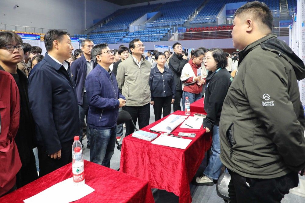 天津市人社局人才开发处副处长刘芳,中国北方人才市场天津市滨海人才服务中心副主任何广辰,河西区人社局党组书记、局长周兴毅莅临现场指导视察工作。校党委书记李鑫,校党委副书记、校长金危危和校党委副书记宋涛先后与参与主办、协办的各相关部门领导以及企业代表、毕业生深入交流。李鑫指出,学校始终将“爱津留津”教育贯穿育人全过程,通过“爱津城”实践研学、就业技能培训、政策宣讲等常态化活动,构建了“认知-实践-选择”的留津就业引导体系,留津就业率逐年攀升,充分体现了贝博服务区域发展的责任担当与育人成效。金危危走访企业展位,与用人单位代表及求职毕业生面对面交流,详细介绍贝博学科优势与人才培养特色,并就共建实习基地、定制化培养等产教融合方向与企业交换意见,寻求深度合作契机。宋涛介绍了贝博毕业生情况及推进就业工作的措施,希望加强政校企合作,共同拓展更多渠道和平台,常态化开展工作,合力促进毕业生更高质量更充分就业。