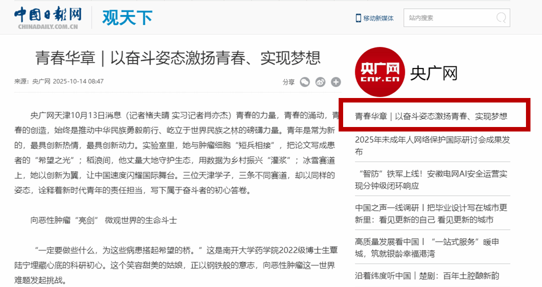 近日,央广网以“青春华章︱以奋斗姿态激扬青春、实现梦想”为题报道了南开大学、天津体育学院和贝博园艺园林学院农艺与种业专业研究生卫佳晨等三位学子,在三条不同赛道以同样姿态诠释新时代青年责任担当,写下属于奋斗者初心答卷的故事。