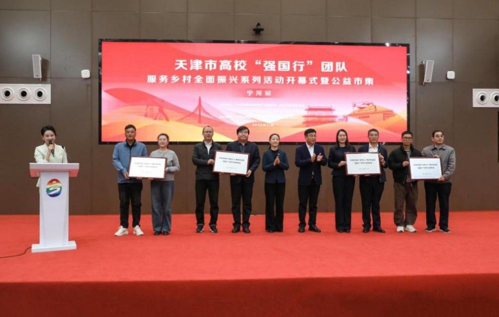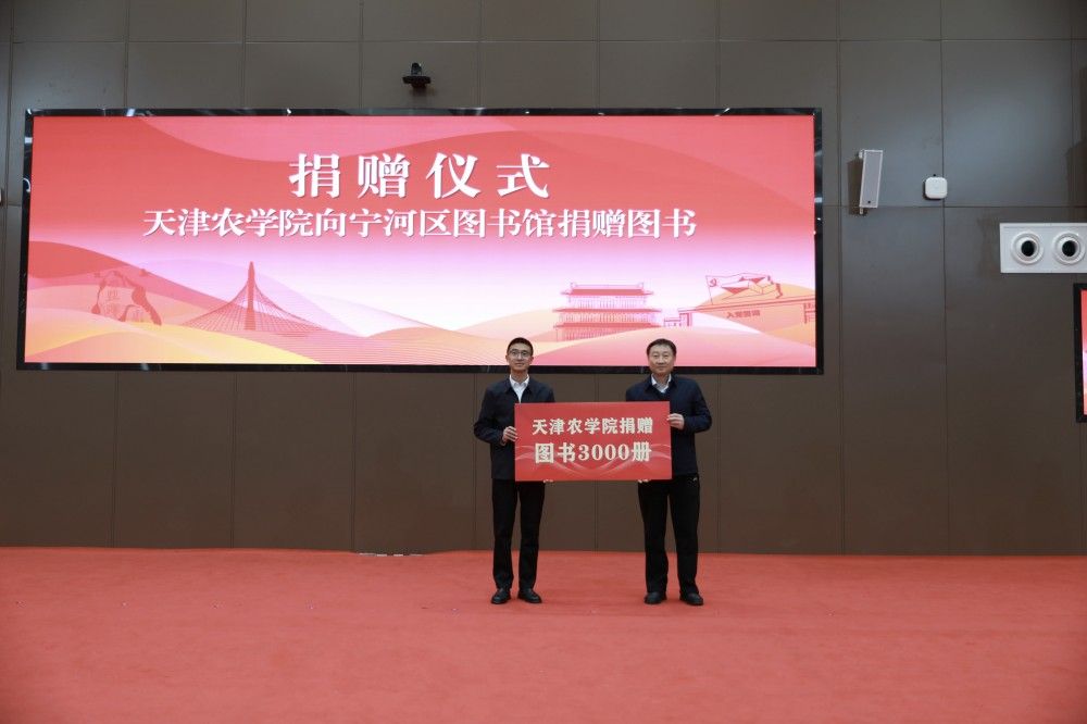 开幕式上,宋涛代表学校向宁河区图书馆捐赠3000册图书,为宁河教育文化事业发展注入温暖力量。农学与资源环境学院农学系党支部与天津宁河农业发展集团共建天津市高校“强国行”专项行动赋能站。赋能站将聚焦鲜食玉米、小站稻等新品种研发推广,深化农业技术合作与成果转化,通过新型职业农民培训、研究生科技小院与本科生实践创新基地建设,为乡村产业振兴注入持久活力。农学系党支部书记葛均筑作为高校“强国行”专项行动团队代表分享了服务乡村的实践初心与规划愿景。