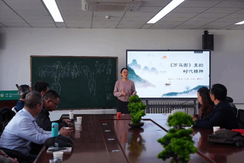 马克思主义学院艾博老师带来习近平文化思想专题思政微党课,从厚积薄发、辩证留白、传承创新三个维度,解读《万马图》蕴含的精神密码,指出每个人心中都应有属于自己的“万马图”。