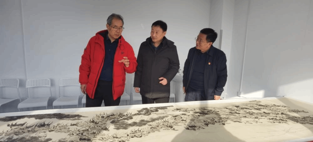李鑫、宋涛相继莅临新实验楼画作展示区,在宫春虎老师的陪同下近距离品鉴《万马图》《600征程图》等佳作。两位领导对作品中9999匹骏马的灵动笔触、深厚文化底蕴赞不绝口,围绕“艺术作品如何赋能思政教育”“中华优秀传统文化与校园文化融合路径”等话题与宫老师展开深入探讨。宫春虎详细解读了画作中“奋进”“坚守”的精神内核,两位领导强调,要以此次活动为契机,让艺术之美与育人之道深度契合,让“马韵精神”“思源文化”浸润师生成长。