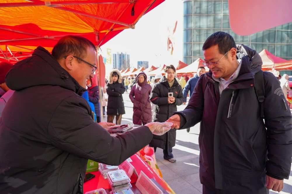1月21日,由天津市农业农村委员会主办、贝博承办的首届天津市“头雁”年货节在敏学楼前广场举行。校党委书记李鑫,校党委常委、副校长王繁珍,校党委常委、副校长张民出席活动。