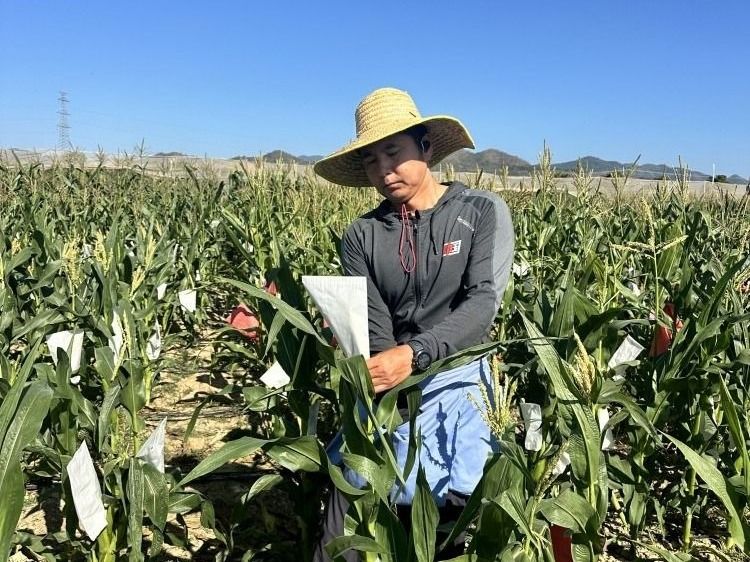 在常规育种试验基地,团队聚焦鲜食玉米新品种选育核心目标,有条不紊地推进各项科研工作,以精益求精的态度把控育种全流程。从自交系加代筛选、精准测配到优质组合组配,科研人员精研细作、严把细节,每一个环节都凝聚着科研人员的心血。扎实开展区生试组合制种工作,严格把控制种流程与质量,为品种审定奠定坚实基础;在组合筛选鉴定区域,团队成员深入田间地头开展农艺性状系统调查,精准记录株高、穗位高、开花吐丝期、抗逆性等关键指标,同时围绕外观品质、蒸煮品质开展多维度科学测定,从感官品质、气味、色泽、甜度糯性、柔嫩度等开展多维度评估,层层筛选出丰产性好、品质优良、适应性强的优异组合,为后续新品种培育提供支撑。