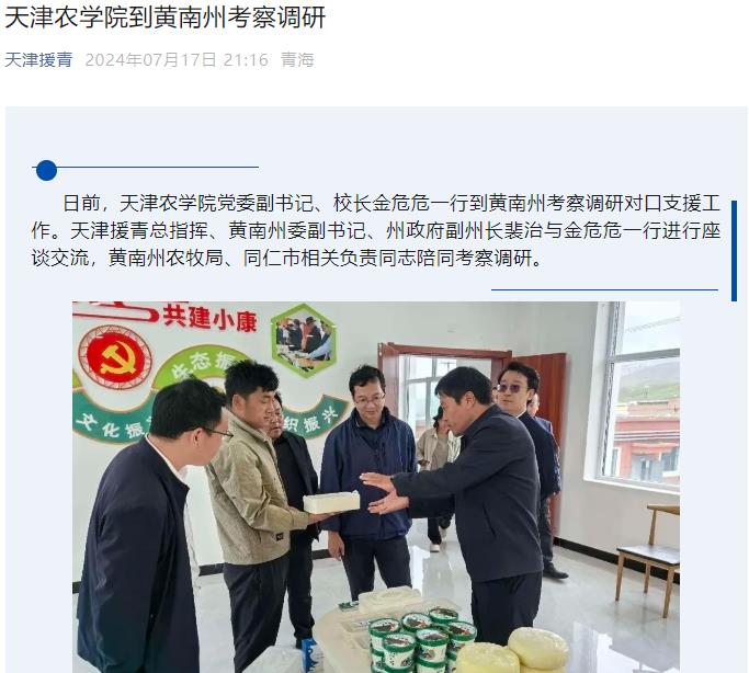 2024年7月17日,天津援青公众号报道校党委副书记、校长金危危一行到黄南州考察调研对口支援工作。