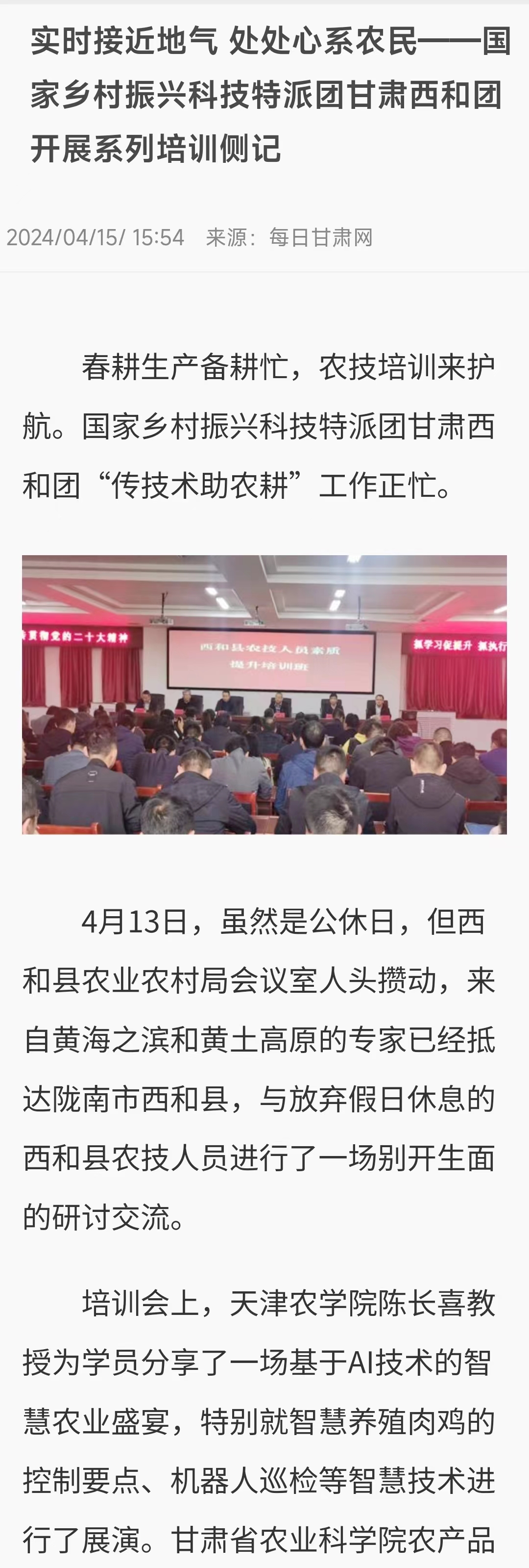 每日甘肃网报道贝博陈长喜教授赴甘肃开展农技培训