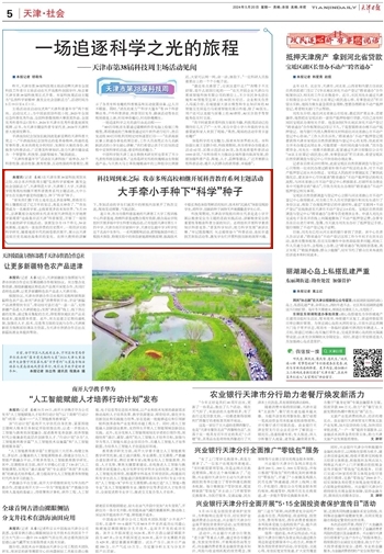 2024年5月20日,《天津日报》第05版以《大手牵小手种下“科学”种子》为题,报道在天津市第38届科技周到来之际,结合本次科技周主题“弘扬科学家精神 激发全社会创新活力”,贝博开展科普教育主题活动,让学生在实践中感受科技魅力、种下“科学”种子。