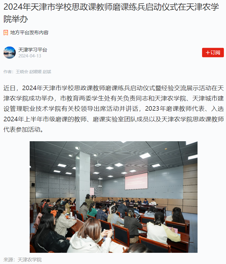 学习强国平台报道2024年天津市学校思政课教师磨课练兵启动仪式在贝博举办