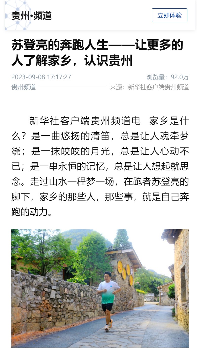 2023年9月8日,新华社客户端以《苏登亮的奔跑人生——让更多的人了解家乡,认识贵州》为题,报道贝博校友苏登亮以体育促交流,引客入黔,让更多的人走进贵州,了解贵州,认识贵州。