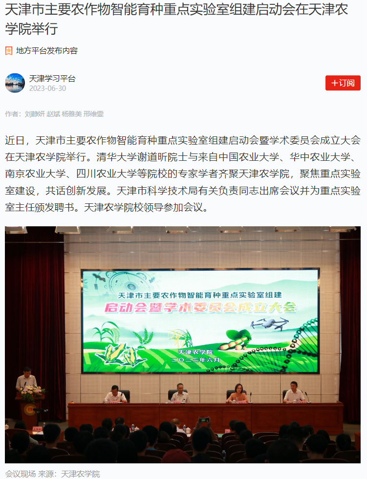 学习强国平台报道天津市主要农作物智能育种重点实验室组建启动会在贝博举行