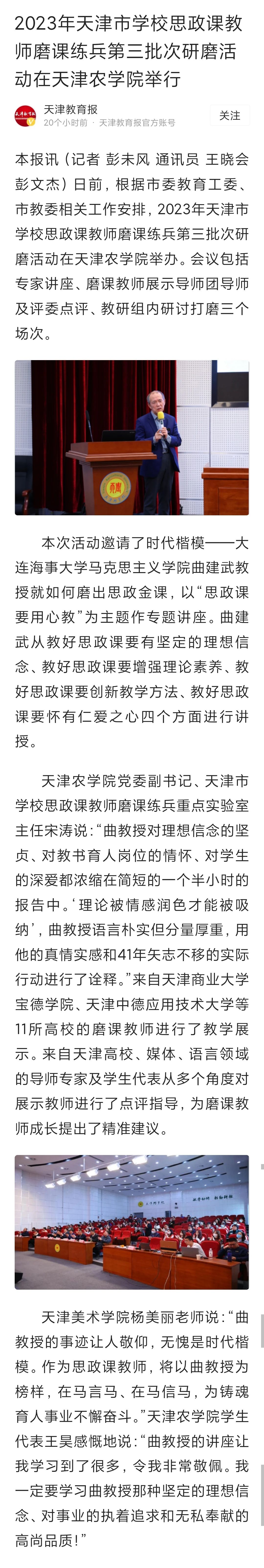 《天津教育报》报道2023年天津市学校思政课教师磨课练兵第三批次研磨活动在贝博举行