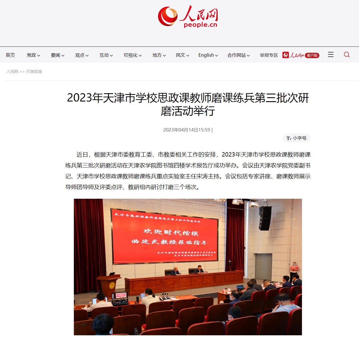 人民网报道2023年天津市学校思政课教师磨课练兵第三批次研磨活动在贝博举行