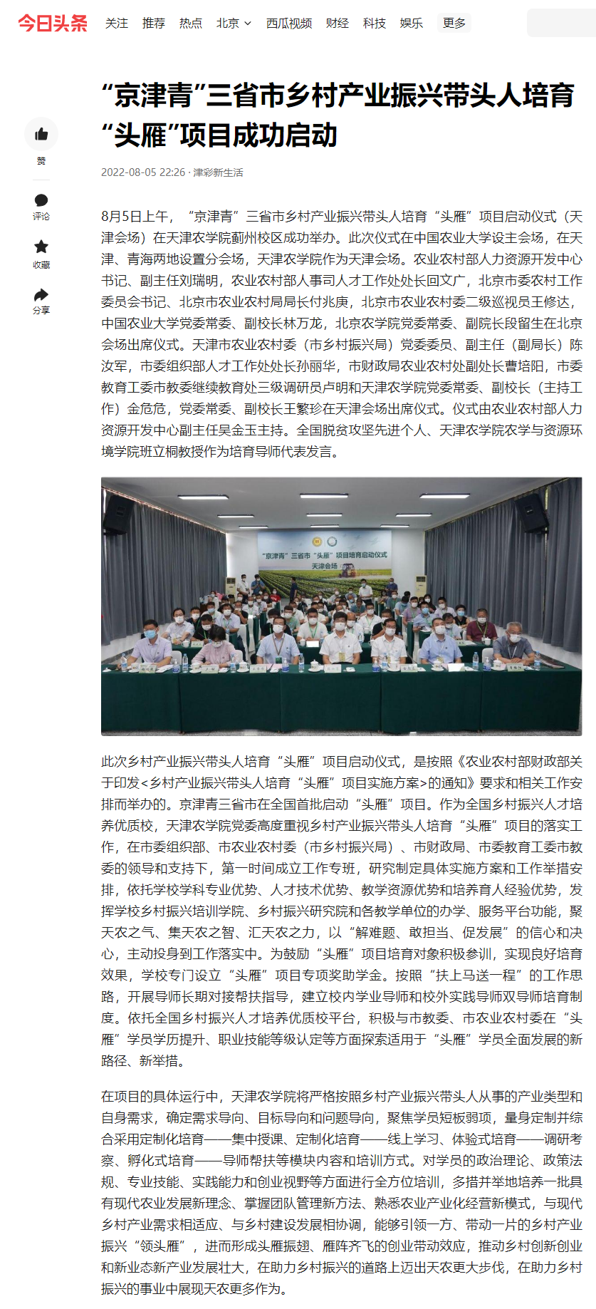 此次乡村产业振兴带头人培育“头雁”项目启动仪式,是按照《农业农村部财政部关于印发<乡村产业振兴带头人培育“头雁”项目实施方案>的通知》要求和相关工作安排而举办的。京津青三省市在全国首批启动“头雁”项目。作为全国乡村振兴人才培养优质校,艾弗森ballbet贝博党委高度重视乡村产业振兴带头人培育“头雁”项目的落实工作,在市委组织部、市农业农村委(市乡村振兴局)、市财政局、市委教育工委市教委的领导和支持下,第一时间成立工作专班,研究制定具体实施方案和工作举措安排,依托学校学科专业优势、人才技术优势、教学资源优势和培养育人经验优势,发挥学校乡村振兴培训学院、乡村振兴研究院和各教学单位的办学、服务平台功能,聚天农之气、集天农之智、汇天农之力,以“解难题、敢担当、促发展”的信心和决心,主动投身到工作落实中。为鼓励“头雁”项目培育对象积极参训,实现良好培育效果,学校专门设立“头雁”项目专项奖助学金。按照“扶上马送一程”的工作思路,开展导师长期对接帮扶指导,建立校内学业导师和校外实践导师双导师培育制度。依托全国乡村振兴人才培养优质校平台,积极与市教委、市农业农村委在“头雁”学员学历提升、职业技能等级认定等方面探索适用于“头雁”学员全面发展的新路径、新举措。