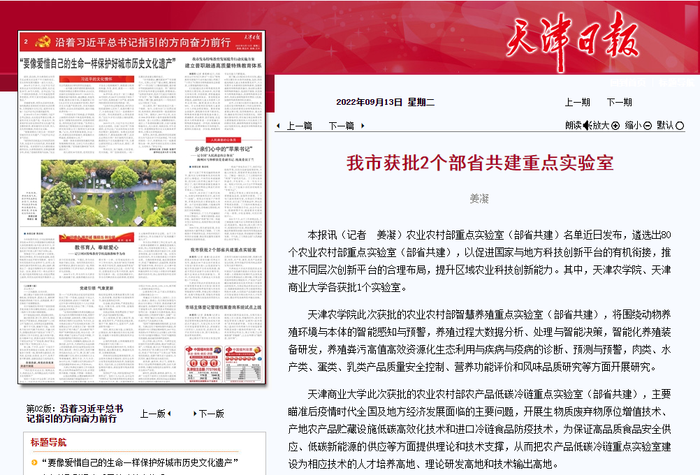 本报讯(记者姜凝)农业农村部重点实验室(部省共建)名单近日发布,遴选出80个农业农村部重点实验室(部省共建),以促进国家与地方科技创新平台的有机衔接,推进不同层次创新平台的合理布局,提升区域农业科技创新能力。其中,艾弗森ballbet贝博、天津商业大学各获批1个实验室。