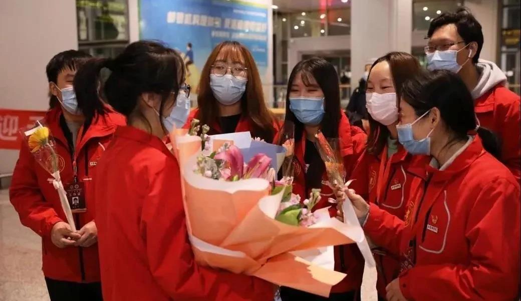 支教团师生抵达后,两所高校的相关负责人及师生代表,在机场大厅举行了简短的迎接仪式。支教团的每一位成员,都在第一时间收到了阔别已久的师长同窗们送上的鲜花,倍感温馨。